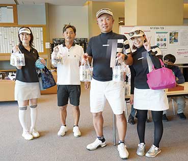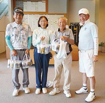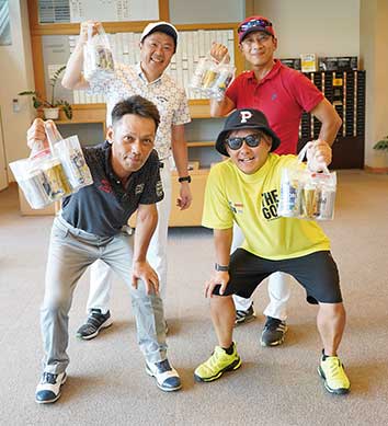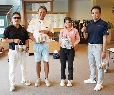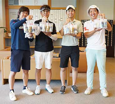 10メートルパットを沈めたり、池ポチャかと思えば石に当たって復帰など笑いのゴルフであふれていました。参加賞のアサヒビール缶アラカルトで皆さんポーズを決めてくださいましたよ!