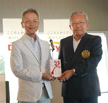 本大会ではチャリティとして 大会出場選手、協賛社から高松キワニス クラブを通じて高松市こども食堂への 寄付をされています。