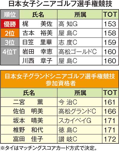 また、本競技上位者で昭和40年12月31日以前に誕生した者5名に第2回 日本女子グランドシニア選手権競技(11月6日・7日兵庫県 千刈カンツリー俱楽部)への参加資格が付与されました。