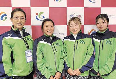 ▲(左から)川西 章子監督、岡 里音・松浦 葵・山﨑 晴稀選手