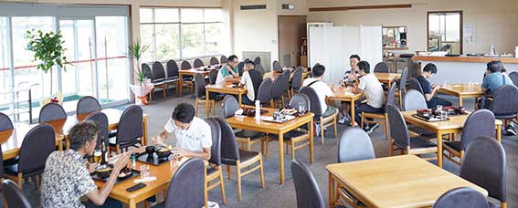 メニューも和・洋風と様々な定食があり、バラエティに富んでいます。利用したお客様は「親子丼も卵がトロトロで鳥の香りがしっかりしておいしい」「お頭付きのエビフライが豪快で目にもおいしい」と評判です。中には新店情報を聴きつけて「ゴルフしないのですが親子で来ました。緑の芝が楽しめて絶景ですね」と一般のお客さまも。ことでん春日駅の横なのでお昼を食べにくるお客様もいらっしゃるそう。