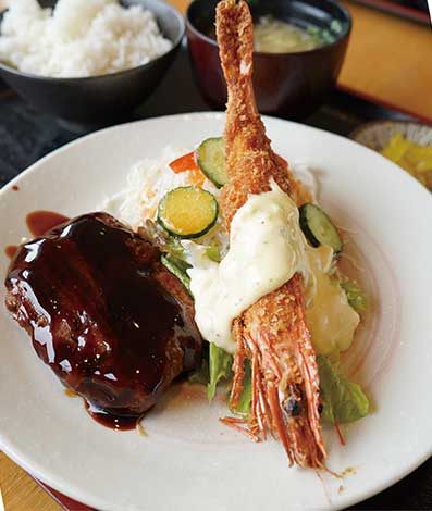 ▲おすすめ!ハンバーグ&エビフライ定食