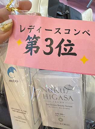 「そして飛び賞!! 今回は3位で支配人セレクトの化粧品でした♪」