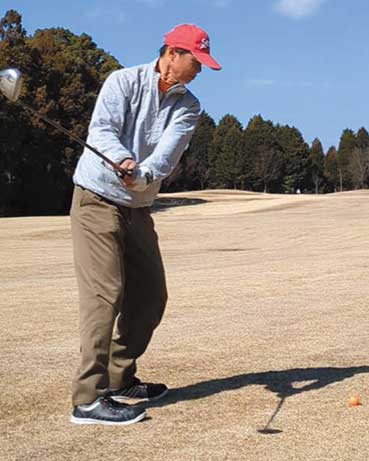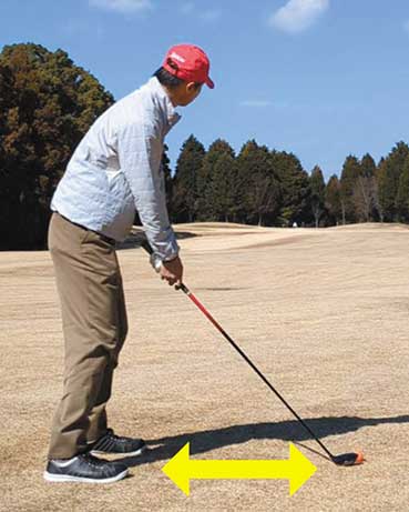 アドレスで少しボールから離れ気味にしてスイングしますと、フォローでの抜けがよくなります。